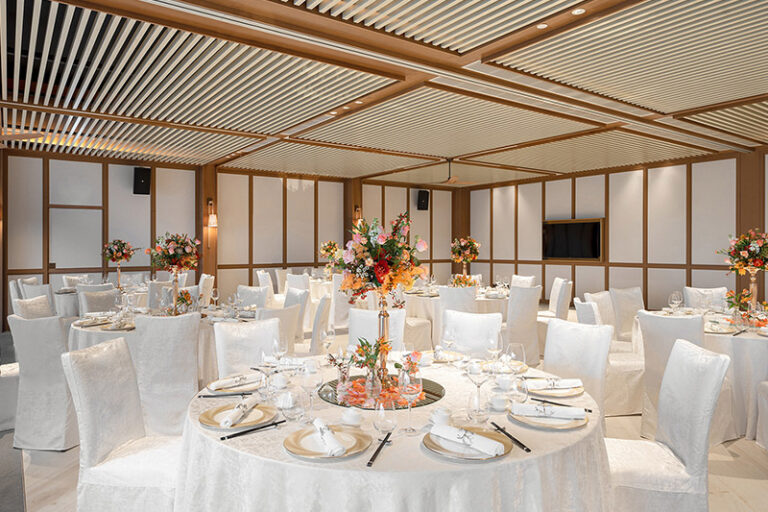 位於酒店3樓的泓閣設計典雅不失氣派,溫潤木質元素配上精緻花藝點綴,營造出自然又充滿儀式感的慶典空間。場地可容納多達160位賓客,特別適合舉辦溫馨而隆重的BB百日宴。在柔和光線與細膩佈置下,與親友分享寶寶成長的重要時刻,這裡會否正合你心意?