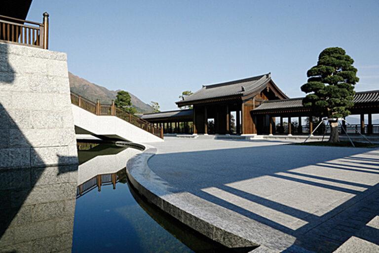 慈山寺虎門依傳統烏頭門設計,與寺內山門相錯,形成一條景色優美的過渡路線。家長們可與小孩沿路而行,彷彿在心中為朝聖作準備,逐步放下煩囂。