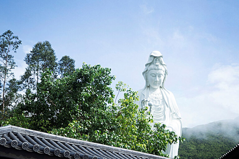 以青銅合金鑄造的素白觀音聖像高達76米,慈悲莊嚴,其右手持智慧摩尼寶珠,左手持淨瓶,施灑淨水,讓信眾獲得清淨。不同於觀光導向景點,這裡更重視修學與清淨氛圍。